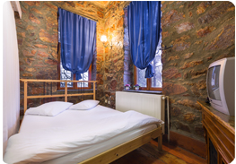 Köşkorman'ın birinci katında bulunan bu odamız yaklaşık 12m² olup, içinde 1 adet çift kişilik yatak, TV, dolap, pervane, duş ve tuvalet mevcuttur. Tavan yüksekliği 5 metreyi bulan odamızın duvarları taş kaplama, yerleri ve tavanı ise ahşap kaplamalıdır. |